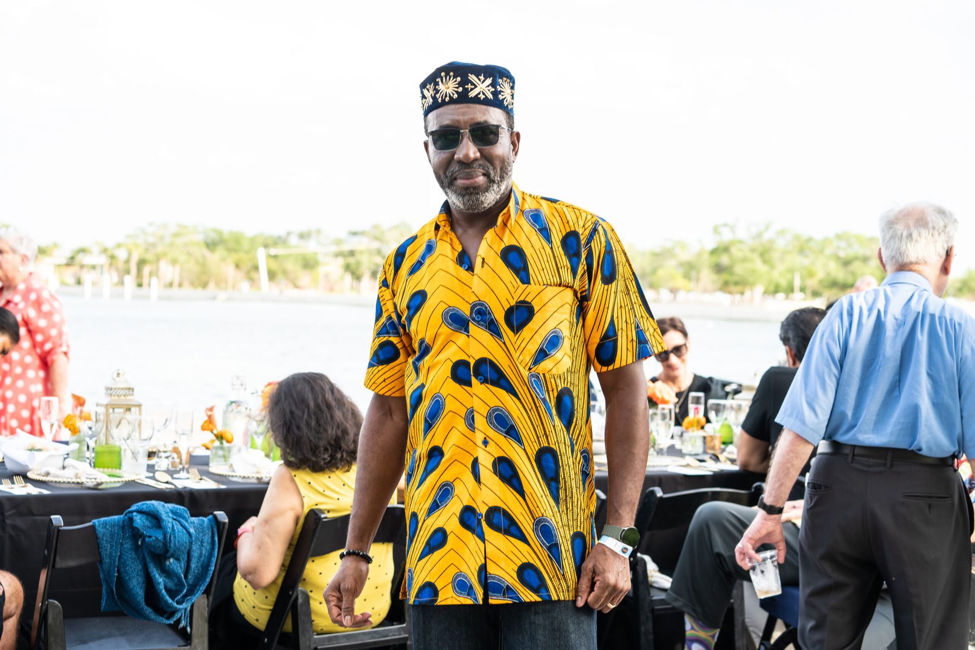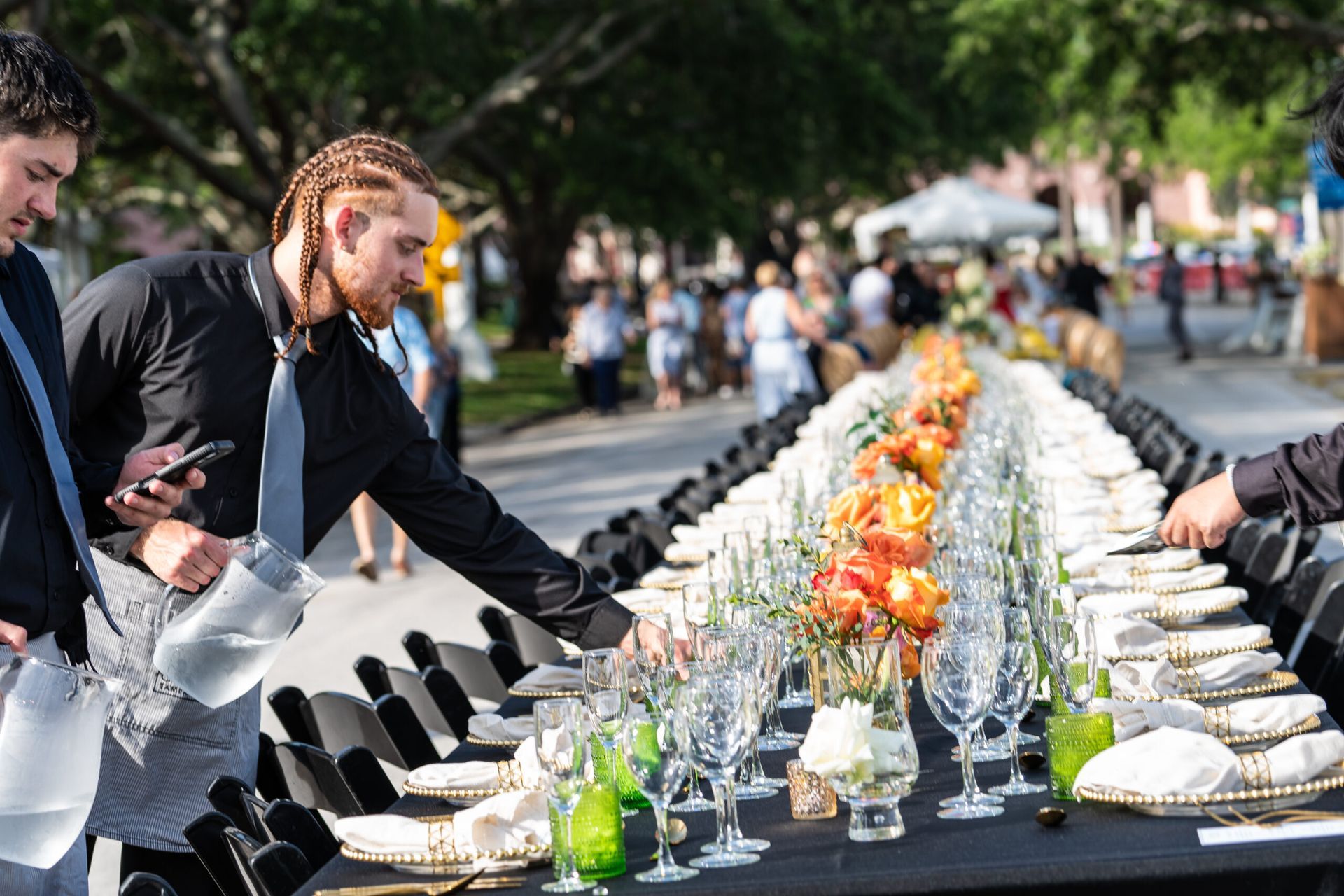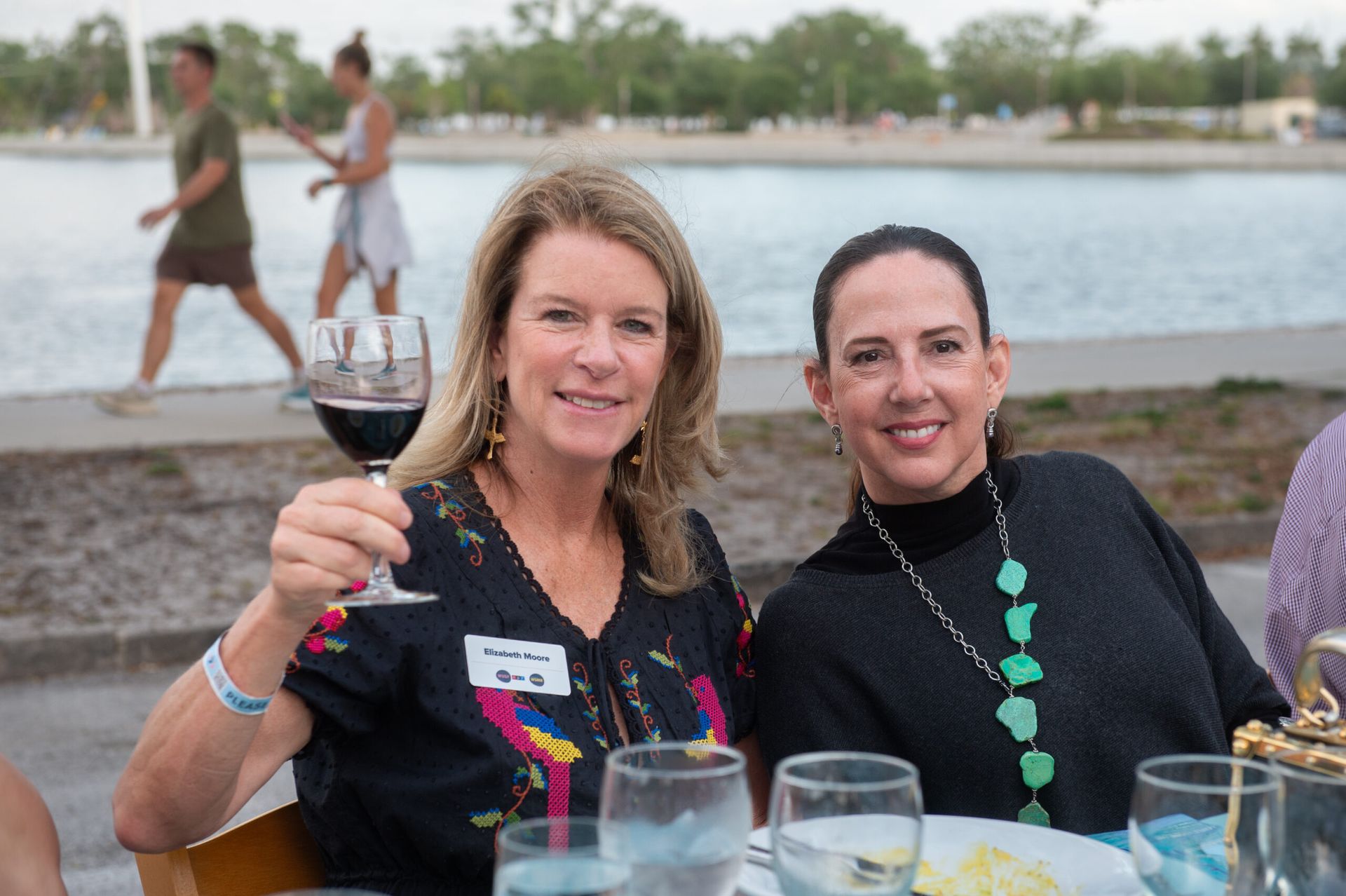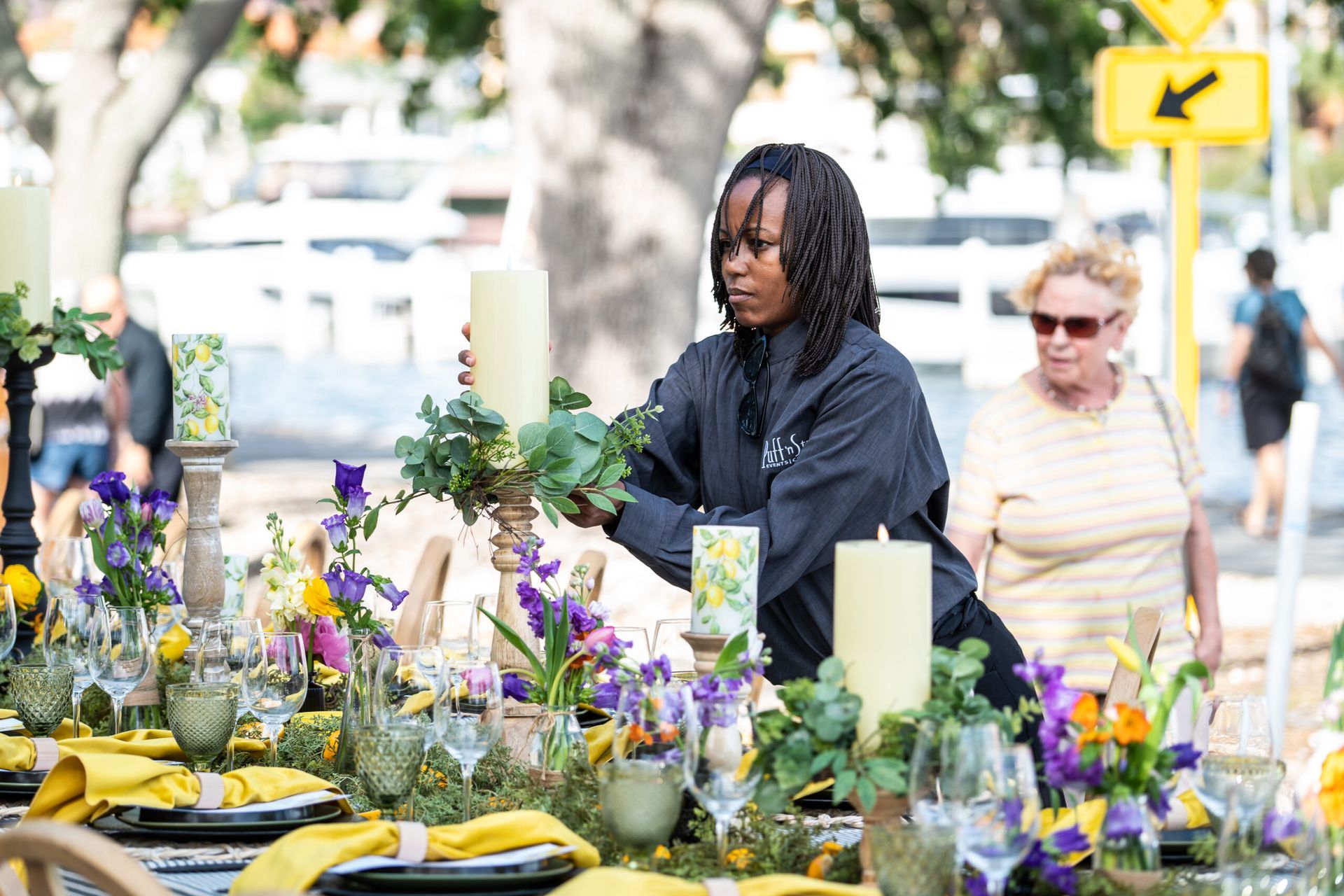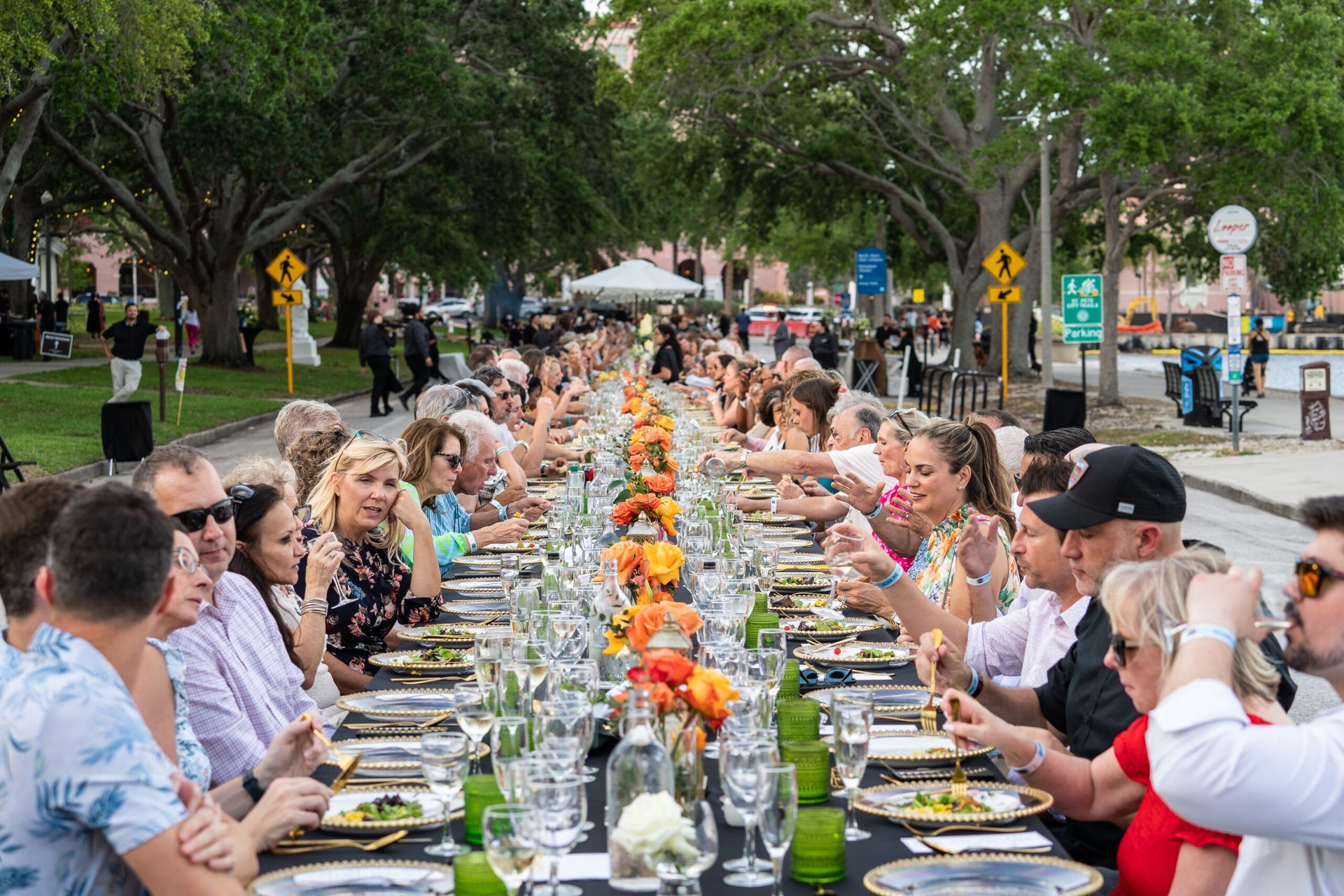 - Features beautifully set tables stretching for blocks with waterfront views