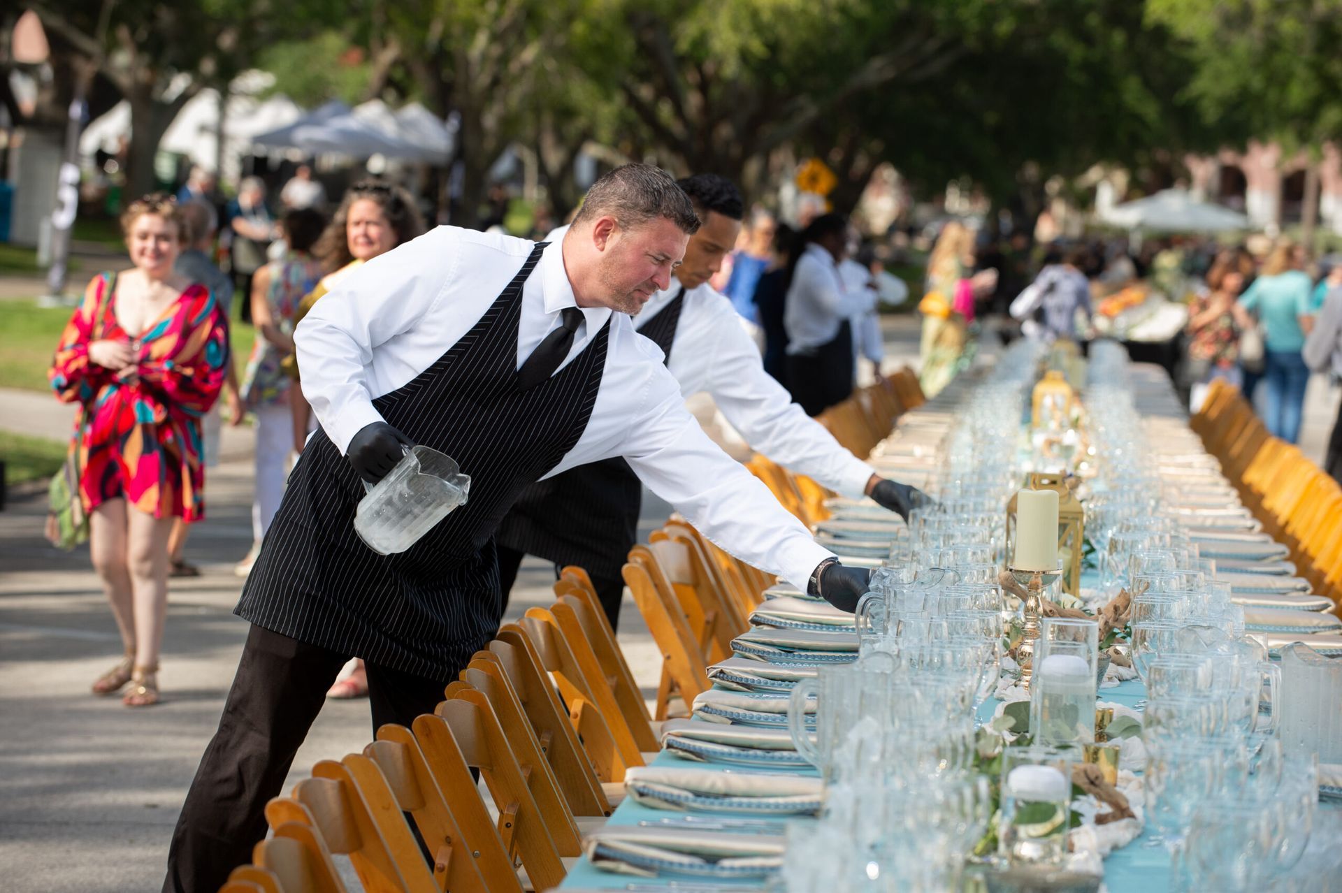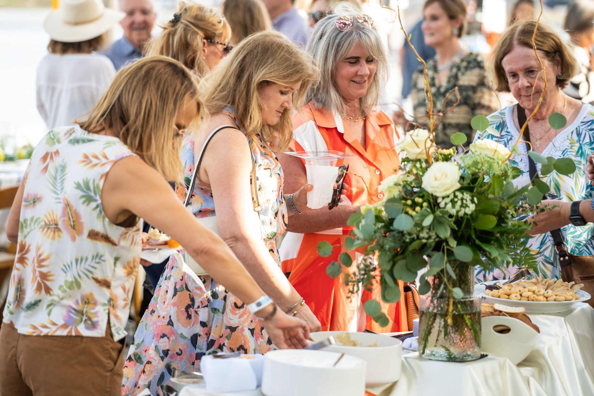 - Guests enjoy wine, appetizers, and entrees from top local restaurants