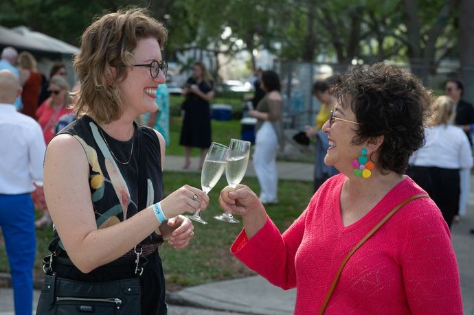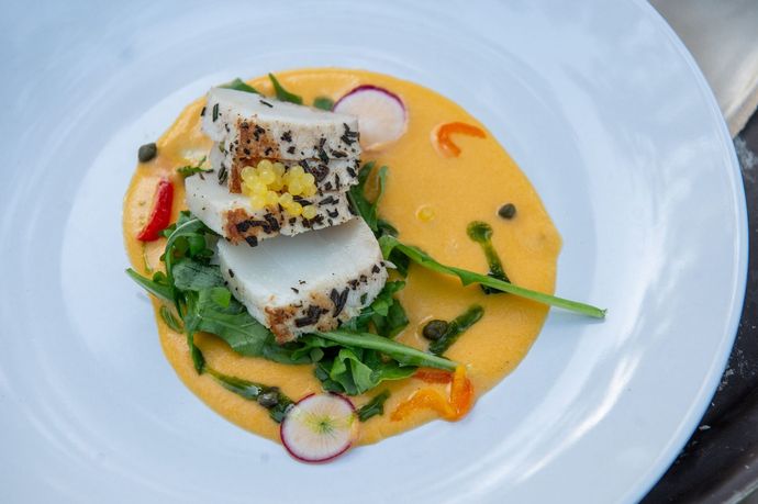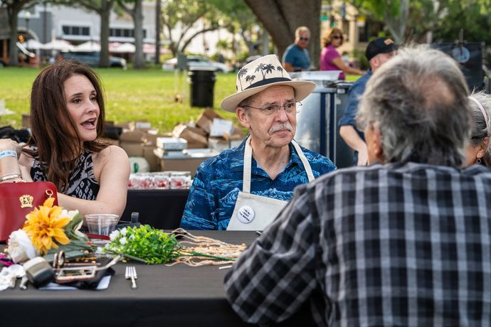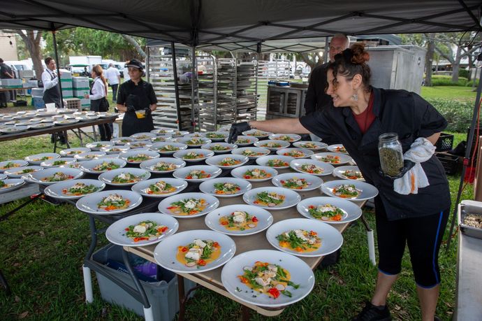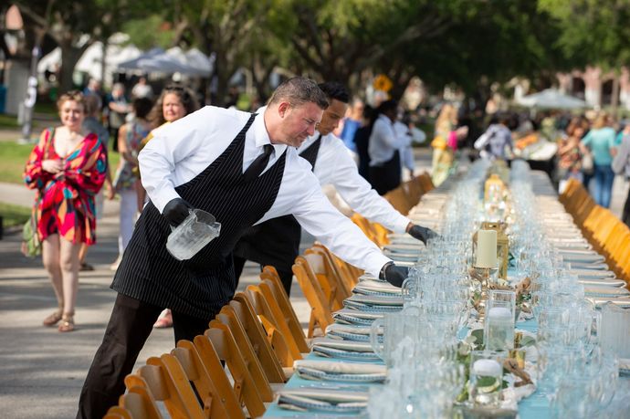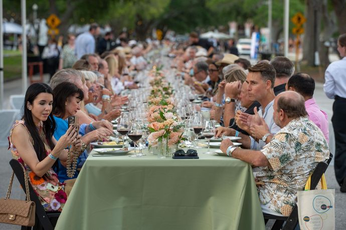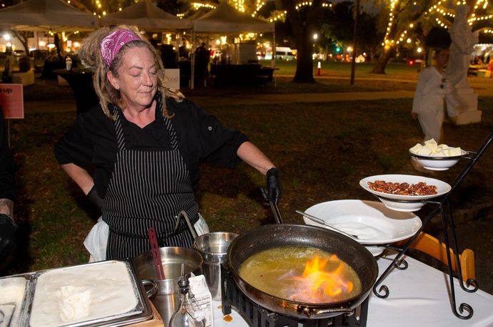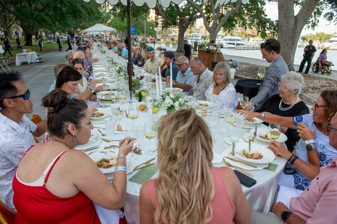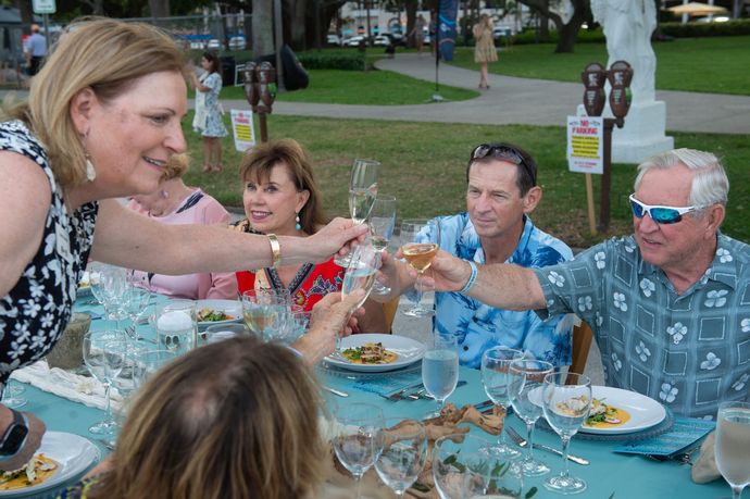 - Guests enjoy wine, appetizers, and entrees from top local restaurants